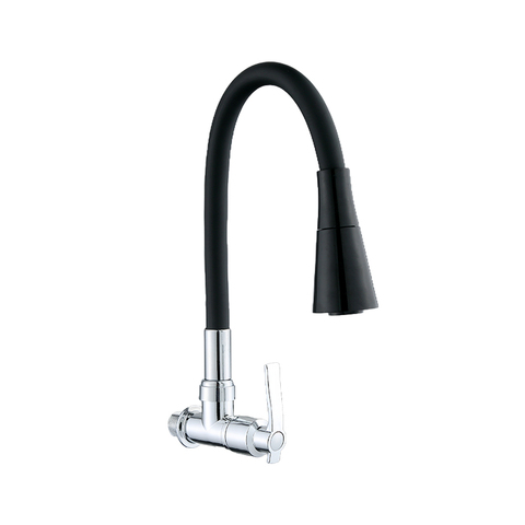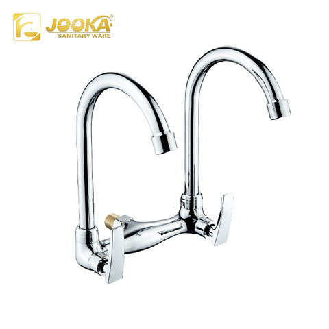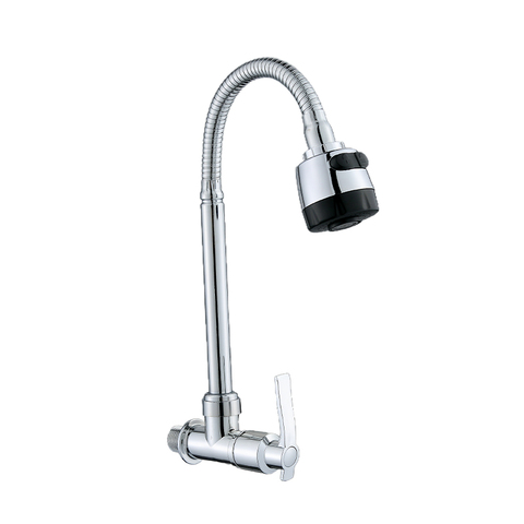 Wand montage Doppelgriffe Küchen spüle Wasserhahn Verchromte Zink legierung Küchen armatur Single Cold Water Long Neck Modern Style