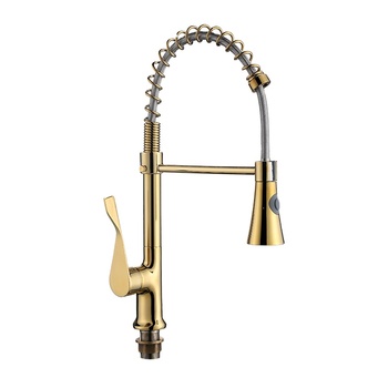 Alta Qualidade Ouro Único Punho Pull Down 2 Função High Arc Spring Kitchen Faucet com Pulverizador Torneira De Pia Comercial Cozinha