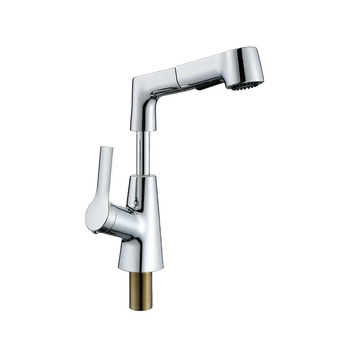 New Design Modern Deck Mounted Water Faucet Pull Out Single Hole Washbasin Rotation Basin Tap for Bathroom